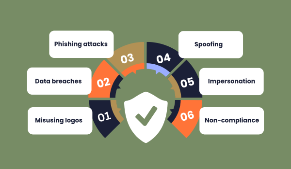 Domain and email spoofing involve forging legitimate domains or email addresses to trick recipients into thinking messages or websites are authentic. Spoofing is frequently used in phishing campaigns and can harm your brand by associating it with scams or fraudulent activities.