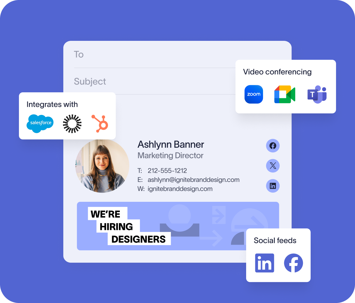 Exclaimer is built to fit into broader enterprise workflows, making the most of the tools you already use. We offer deep integrations with CRM platforms, identity providers like Okta, social channels, and major video platforms.