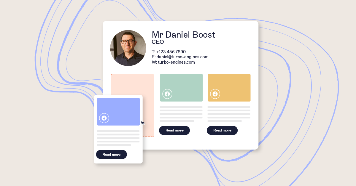 • Optimieren Sie Ihre E-Mail-Signaturen, um sie visueller, professioneller und interaktiver zu gestalten. Indem Sie einen Vorgeschmack auf Ihre Beiträge in sozialen Netzwerken geben, können Sie das Interesse eines größeren Publikums wecken, mehr Klicks generieren und Ihr Marketingbudget besser nutzen.
