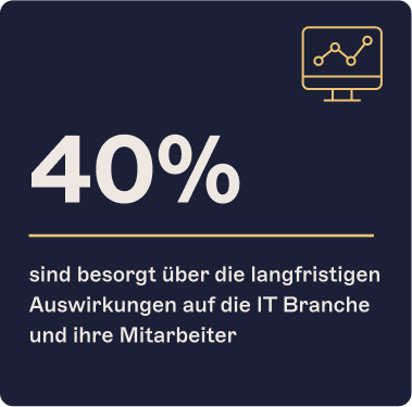 Aufgeschlüsselt nach Hierarchieebenen befürchten 34 % der IT-Manager einen Personalabbau aufgrund von Budgetkürzungen. Knapp dahinter folgen Sicherheitsbedrohungen (33 %) und die Einführung neuer Technologien (29 %).