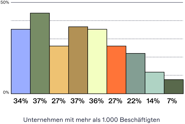 Um Effizienzsteigerungen zu erzielen, setzen IT-Abteilungen auf Automatisierung mit künstlicher Intelligenz. Beeindruckend ist, dass laut einer Umfrage 31,2 % der Befragten bereits 25-50 % ihrer IT-Prozesse automatisiert haben und dadurch wertvolle Zeit sparen.