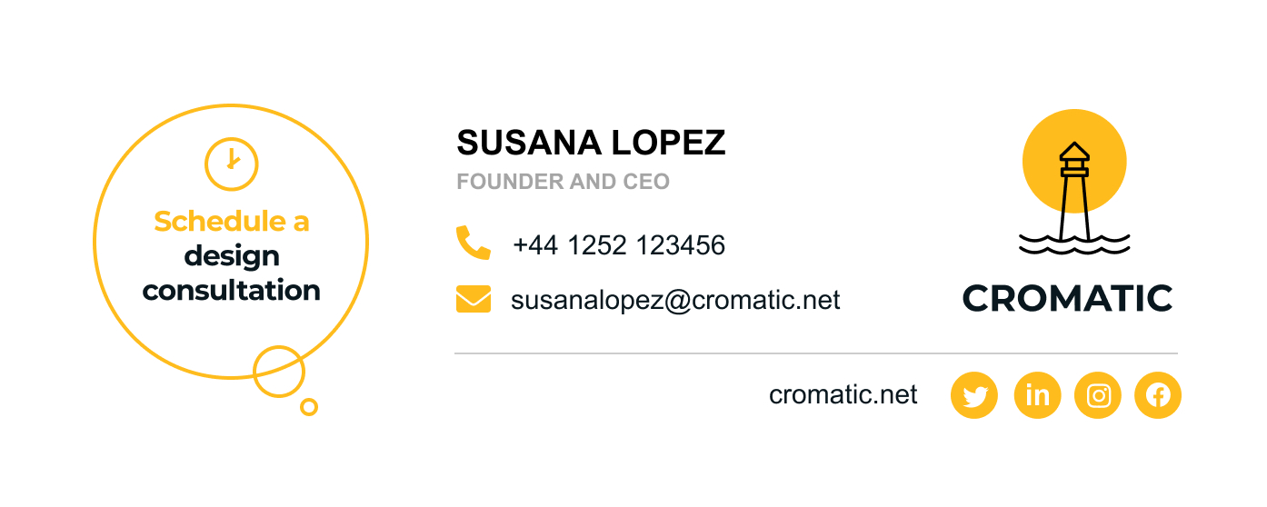 Social-Media-Links: Wenn Sie eine starke Präsenz in sozialen Medien haben, fügen Sie Links zu Ihren Konten in Ihrer E-Mail-Signatur hinzu. Auf diese Weise leiten Sie mehr Verkehr auf Ihre Social-Media-Seiten und erhöhen Ihre Follower-Basis.