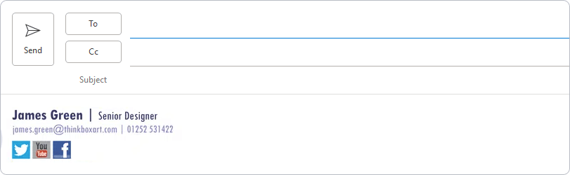 Erstellen Sie Ihre Signatur in einem E-Mail-Client, der HTML unterstützt. Fügen Sie Bilder wie Ihr Logo und sämtliche Social-Media-Symbole hinzu.