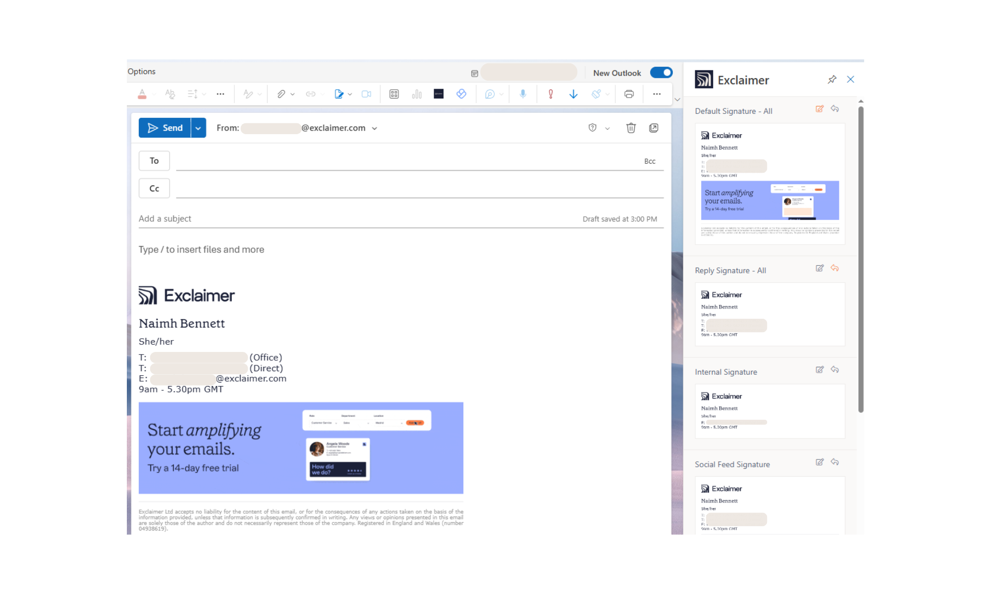 So ändern Sie Outlook 365-Signaturen in Exclaimer