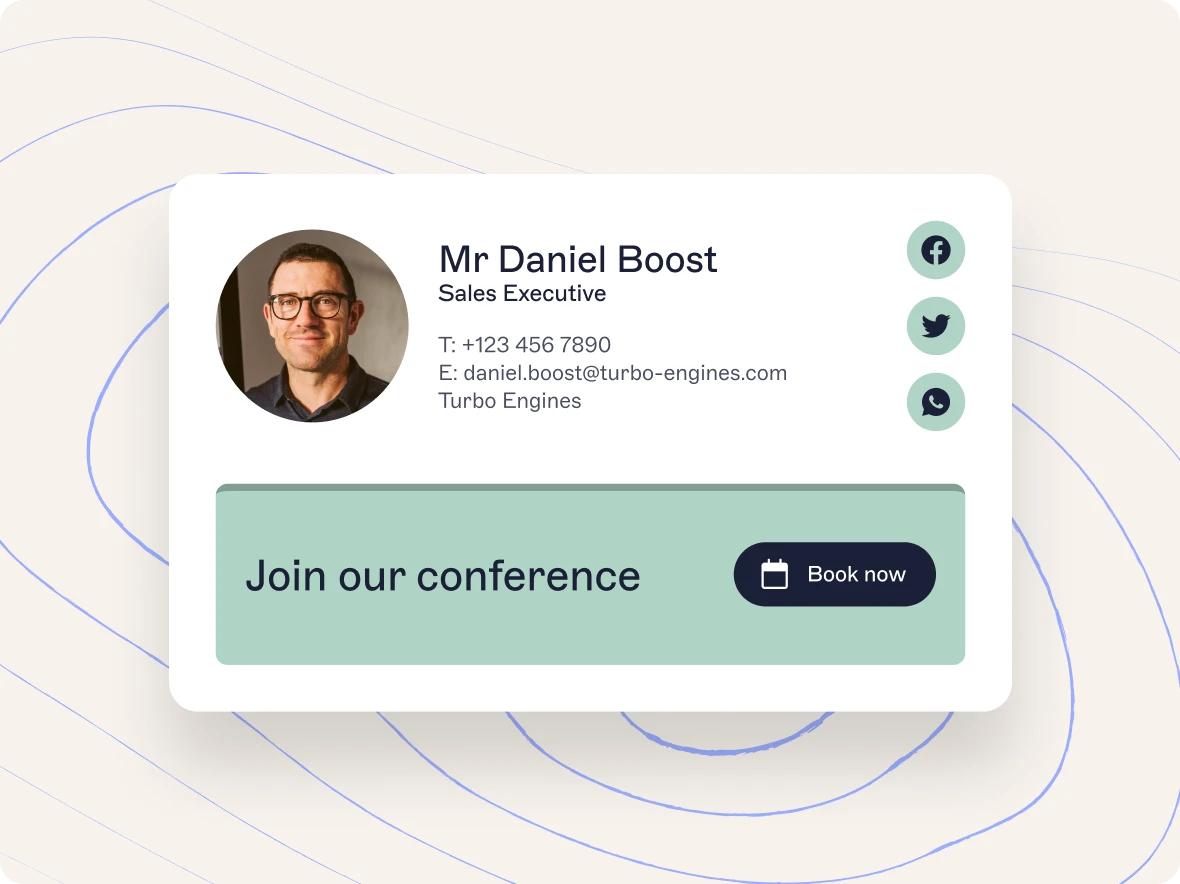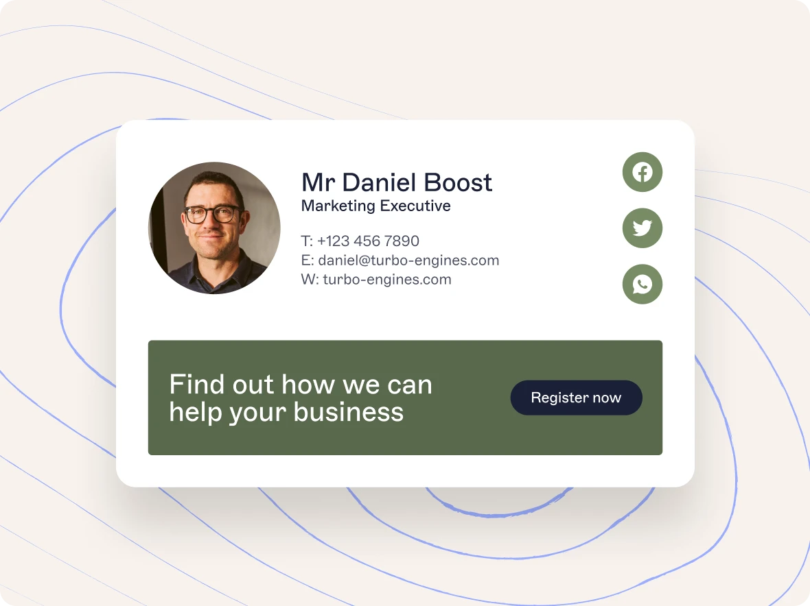 Erstellen Sie E-Mail-Signaturen in unserem Drag&Drop-Editor.