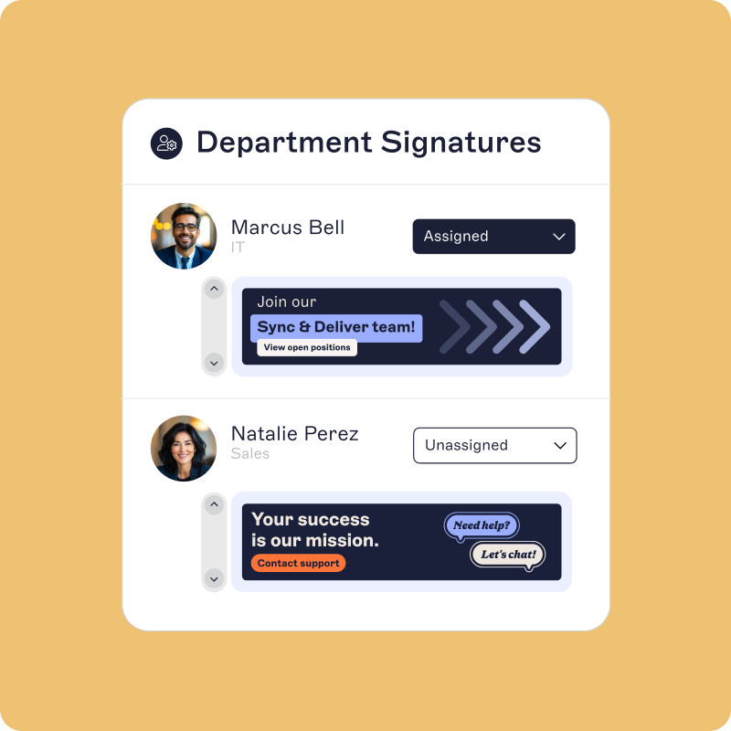 Setzen Sie dynamische Regeln zur Signatur-Zuweisung um. Weisen Sie Signaturen gezielt auf Basis von Abteilung, Standort, Rolle oder anderen Attributen zu. So steuern Sie präzise, wer welche Signatur erhält.