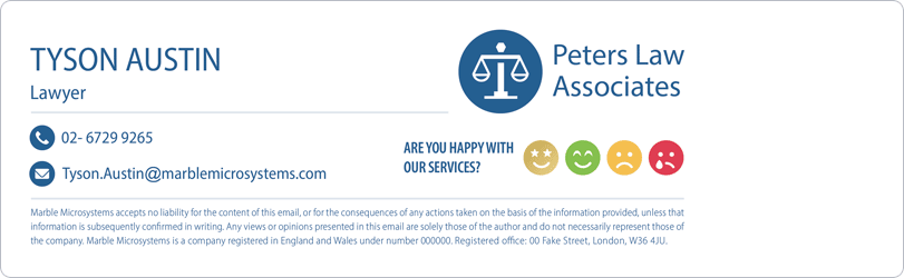 In your lawyer email signature, you should include all necessary contact details such as your full name, job title, full company name, registered office address (you can use a Google Maps link here), and at least one phone number. We also recommend including your email address, which is particularly important if your emails get forwarded to other people.