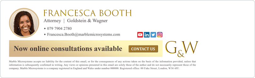 A lawyer email signature can be used for so much more than just contact information. It is the perfect channel to promote your professional services through display banners.