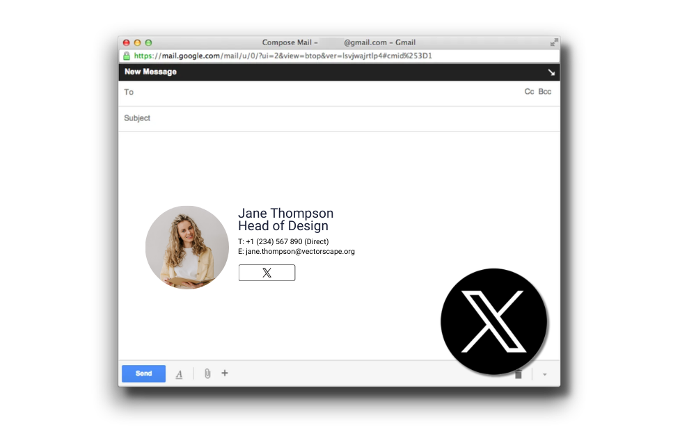If you want to add Twitter to your Gmail signature, you’ll need to insert the X logo as an image and link it to your profile URL.