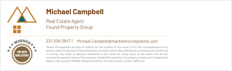 When done correctly, an email signature for realtors can easily introduce you to new clients, drive more traffic to your website, increase your engagement on social media, generate leads, and serve as a personal branding opportunity. Think of it as an electronic business card at the bottom of your email that can be used to promote you and your services.