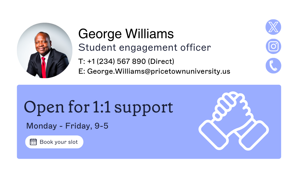 If your school follows Web Content Accessibility Guidelines (WCAG), apply similar principles to email signatures. Clear structure, readable text size, and contrast improve usability for all recipients.