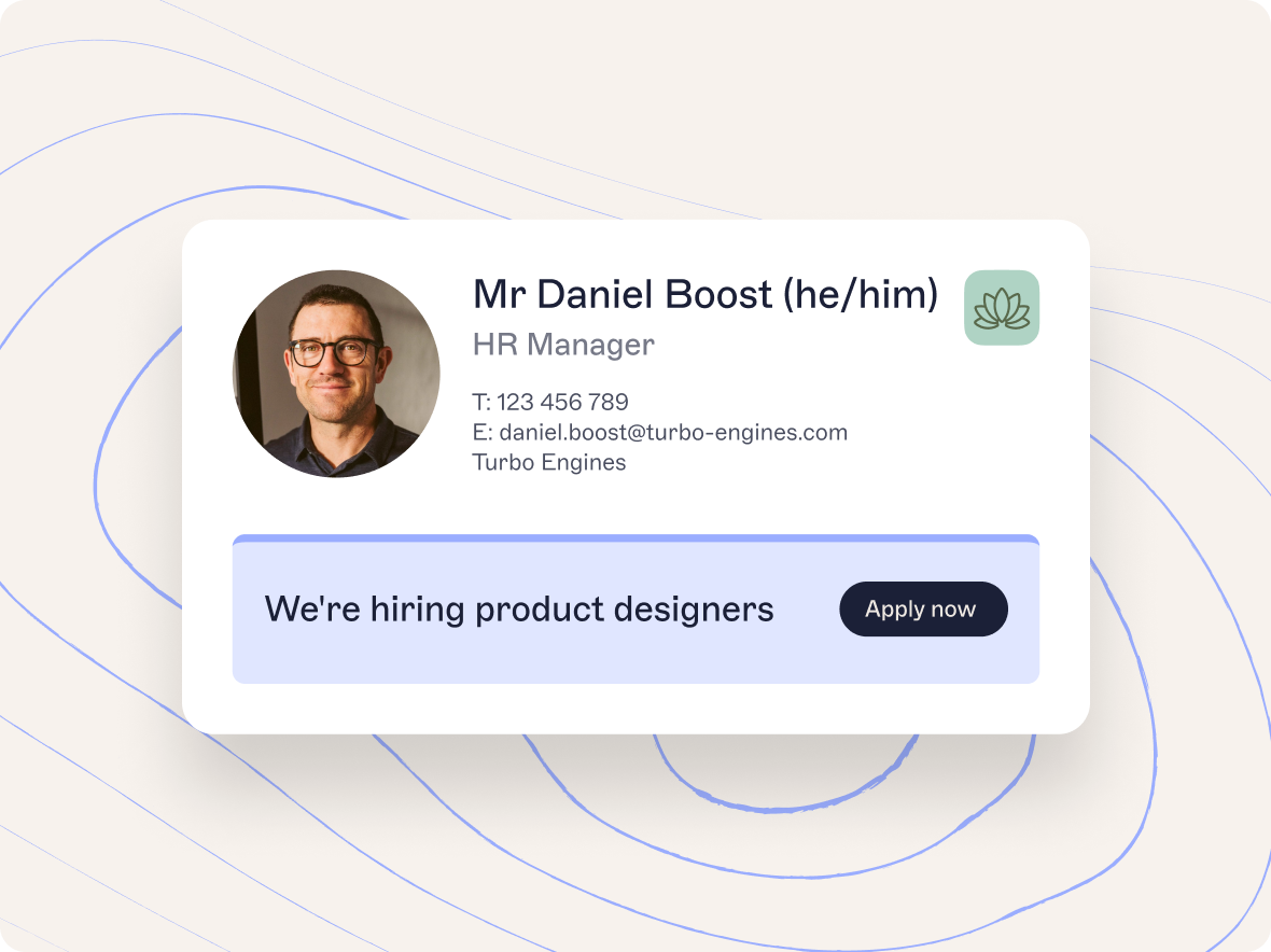 Les signatures d’e-mails peuvent soutenir les campagnes de communication interne en promouvant des initiatives clés, telles que les changements de politiques, les programmes de diversité, d’équité et d’inclusion (DEI), ou les mises à jour de la direction. Dans les grandes organisations, elles peuvent également être utilisées pour mettre en avant des événements internes, des groupes de ressources pour employés ou des ressources d’apprentissage. Une utilisation cohérente dans toutes les équipes aide à sensibiliser et à engager autour des annonces à l’échelle de l’entreprise.