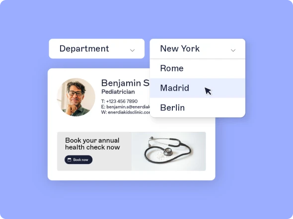 En intégrant votre système CRM avec un gestionnaire de signatures d'email, vous pouvez diffuser des bannières, du contenu ou des appels à l'action (CTA) personnalisés qui reflètent les défis uniques d'un compte. Cela rend vos démarches plus pertinentes, augmentant ainsi les chances d'engagement des décideurs.