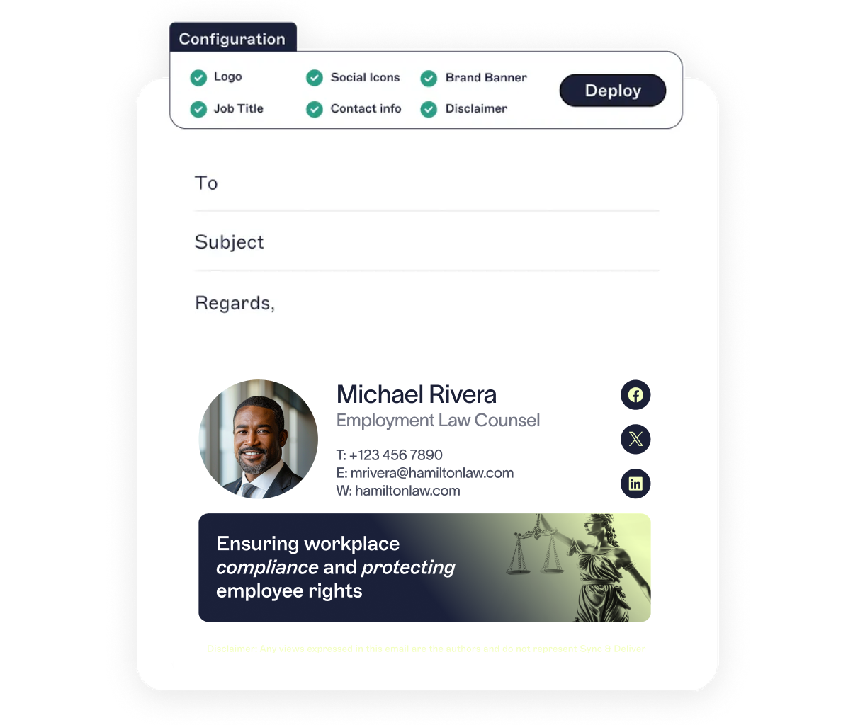 From paralegals on mobile to partners on Outlook, every signature stays correctly formatted and all disclaimers are applied—across every device and email client.