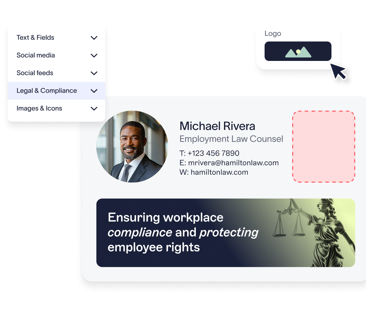 Assign signatures dynamically based on practice area, jurisdiction, seniority, or location, ensuring every email is relevant and fully compliant.