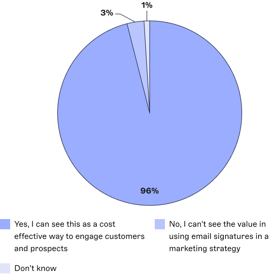 Additionally, over half (59%) of marketers are hoping to generate up to 19% of their revenue through email signatures and 40% hoping to generate 20% or more.