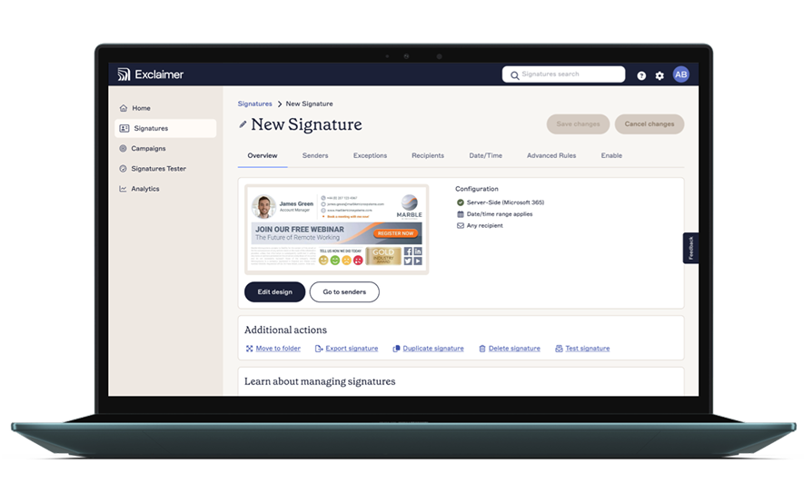 Analyze your data: Use Exclaimer's analytics tools to track the success of your campaigns.